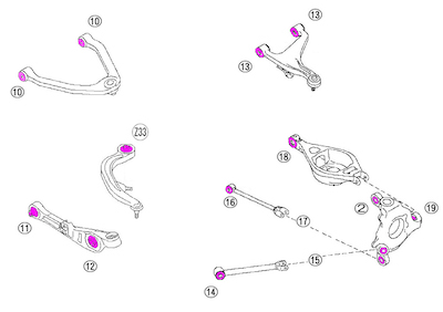 Ikeya Formula Mark II/Chaser/Cresta (#X100 series) Roll Center Adjuster Pillow Lower Arm Kit