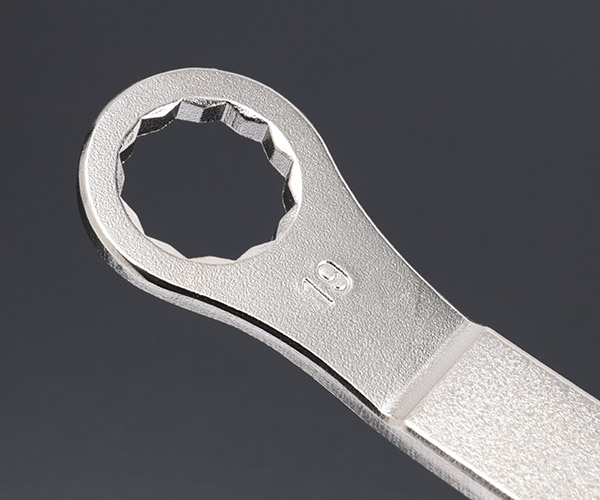 A special offset wrench with hexagonal and 12-pointed ends of the same size