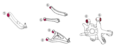 Designed to replace the stock suspension arm rubber bushings. A hard, high-precision pillow ball collar and an oil-free stainless steel pillow ball joint are used. The pillow ball collar has relief processing so that the work can be performed reliably during press-fitting.