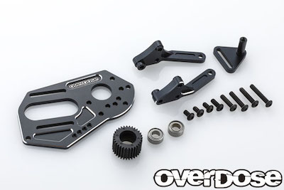 "High mount kit" for changing GALM, GALM ver.2 to high mount motor layout. The motor can be mounted on the front, center, and rear of the spur gear, allowing you to set it up according to your driving style. Also, by equipping the idler gear as standard, both positive torque and half torque motor layouts are possible. It is also possible to make it a center mountless specification with the aluminum rear brace designed exclusively for this kit. It is an expansive kit that can be made into various specifications depending on the idea.