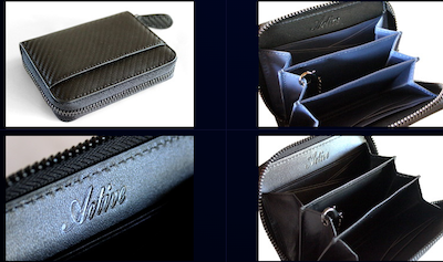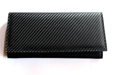 A wallet made of carbon leather used in the aerospace industry and motor sports.
