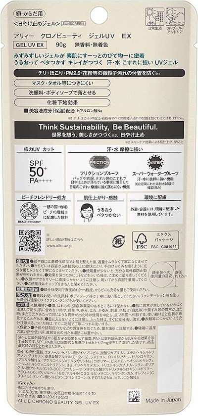 ALLIE Chrono Beauty Gel UV EX SPF 50+/PA+++++, 3.2 oz (90 g), Unscented