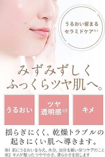 Point 1: Ceramide, a supporter for dry skin for moisturizing skin. Formulated with 5 kinds of humanized ceramide. The "lamella structure" is the same as ceramide found on human skin, so it is comfortable to the skin and can penetrate the corners.