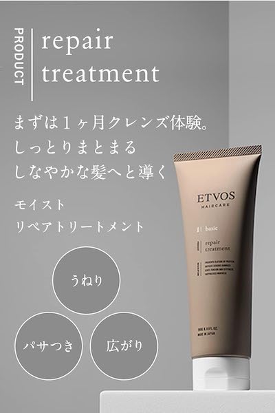 ETVOS Repair Treatment, 6.3 oz (180 g), Non-Silicone, Non-Cationic Damage Care, Hair Repair Ingredients, Cationic Surfactant Free, Fruity Herbal