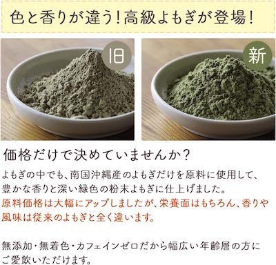 About manufacturing (processing): All oomagi produced in Okinawa prefecture are processed using raw materials in Japan. High temperature heat treatment. Quality inspection after production. As this powder does not use any additives, such as preservatives and colorants, it may fade slightly than the original color of the yomogi
