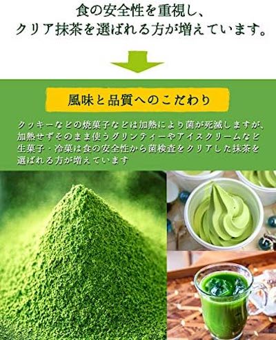 What is Clear Matcha Tea: From processing to bagging, it uses matcha tea that has been treated instantly with high pressure steam without touching human hands or air. You can use it directly as it is for fresh sweets and cold sweets