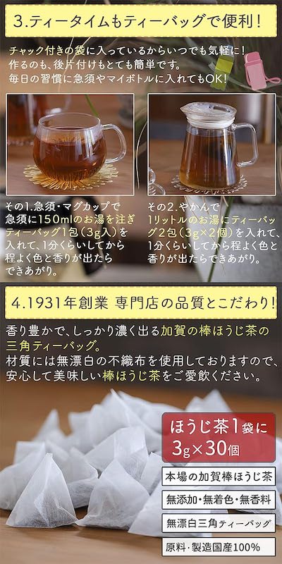 This is an authentic Kagao tea product produced by a long-established tea shop in Ishikawa Prefecture Tea Commercial Cooperation Association. Only the bagging work is final processed in Okayama Prefecture