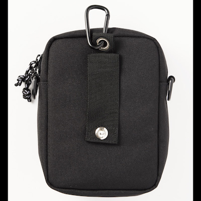 ・The back has a loop and carabiner for various attachment methods.