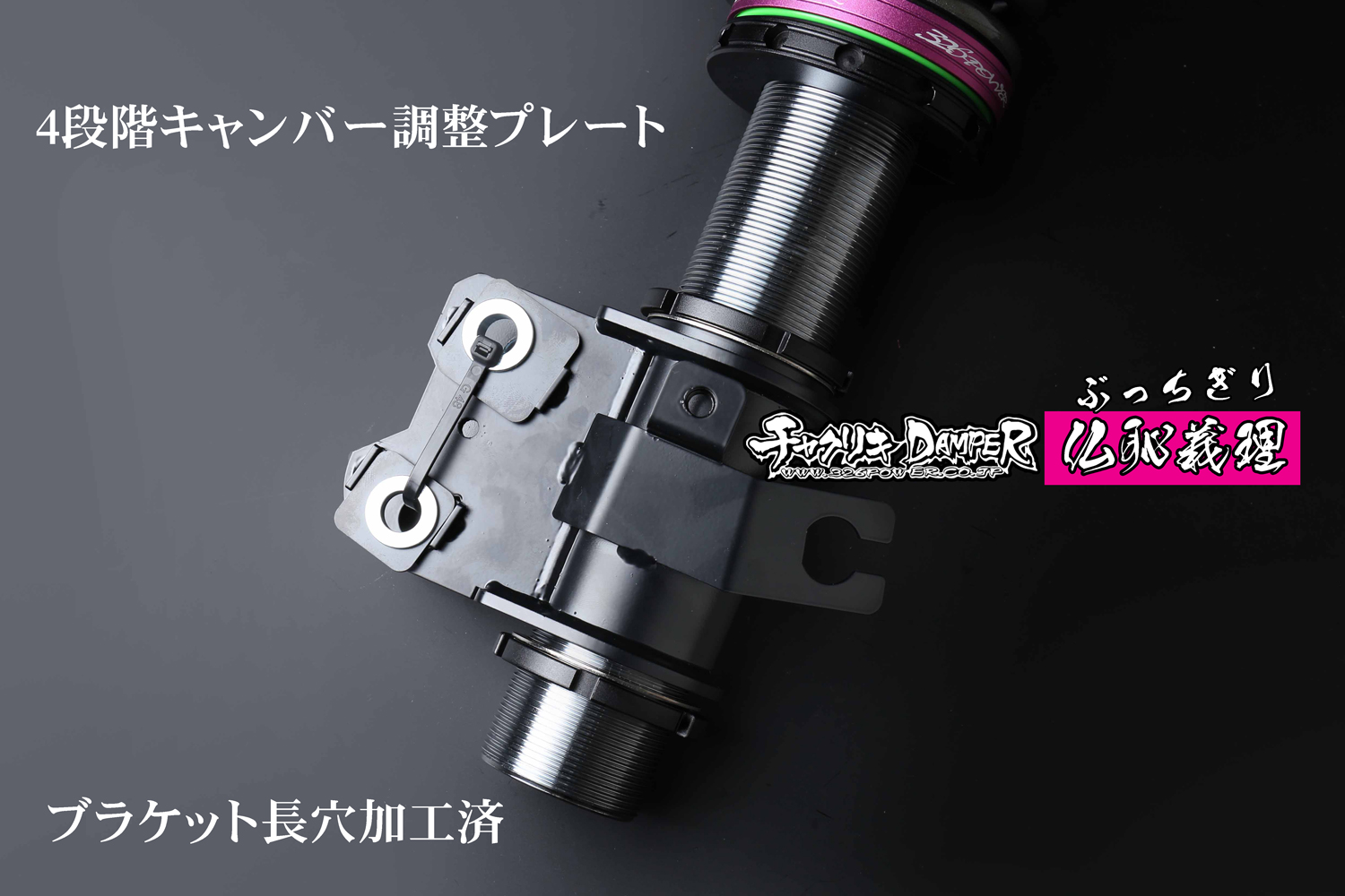 Although it is an indispensable camber adjustment for tire wheel setting, the product is equipped with a stepless pillow upper mount that can be finely adjusted as standard equipment.