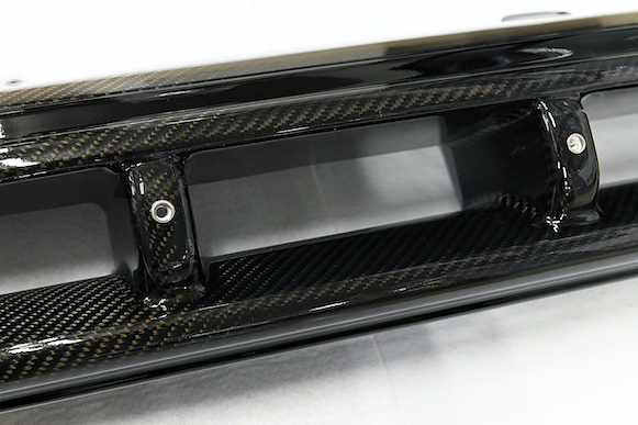 The carbon intake grill has carbon on the grill and intake (around the GT-R emblem), and FRP (black) for the other parts. It can also be used as a dress-up just by processing the bumper face. It is recommended to process genuine reinforcement for sufficient cooling effect. Please ask at a specialty store for processing. This is for genuine bumpers in the previous term. Top Secret aero parts are manufactured on the assumption that they will be installed at a sheet metal factory.