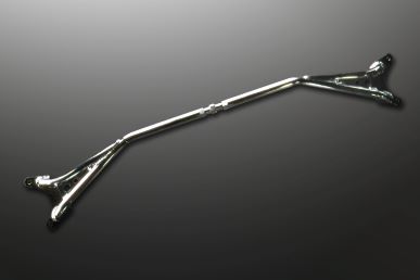 Mine's adopted aluminum for the material of the Strut Tower Bar because of it's light weight and it's hardness similar to steel. It is the perfect part to raise the rigidity, steering, and the response.