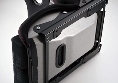 STRADIAIII has a newly designed monocoque body shell with a bone frame and ZETA IV designed by 3D-CAD. The seat rigidity and strength of STRADIAIII have been greatly improved compared to STRADIAII. In addition, its newly-developed reclining mechanism and one-touch reclining lever, which aim at maximal operability, convenience, and durability, achieve more reliable holdability and comfort by suppressing backlash and vibrations through stepwise adjustments. What's more, a belt hole for a 6-point harness has been newly installed on the back of the seat, which uses a specially designed high-density urethane foam for its seat and thigh cushions.