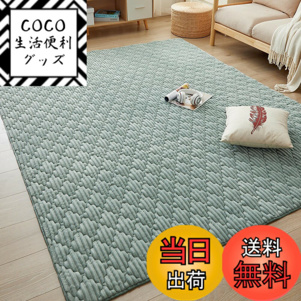 【送料無料】CHOSHOME カーペット ラグ 極厚25mm ラグマット 2畳 絨毯 厚手 オールシーズン 滑り止め 防音 ふわっと手触り 北欧 あったか 洗える フランネル 床暖房 ホットカーペット対応 こたつ敷きマット 無地 防ダニ 防臭 190x190cm グレー/グリーン