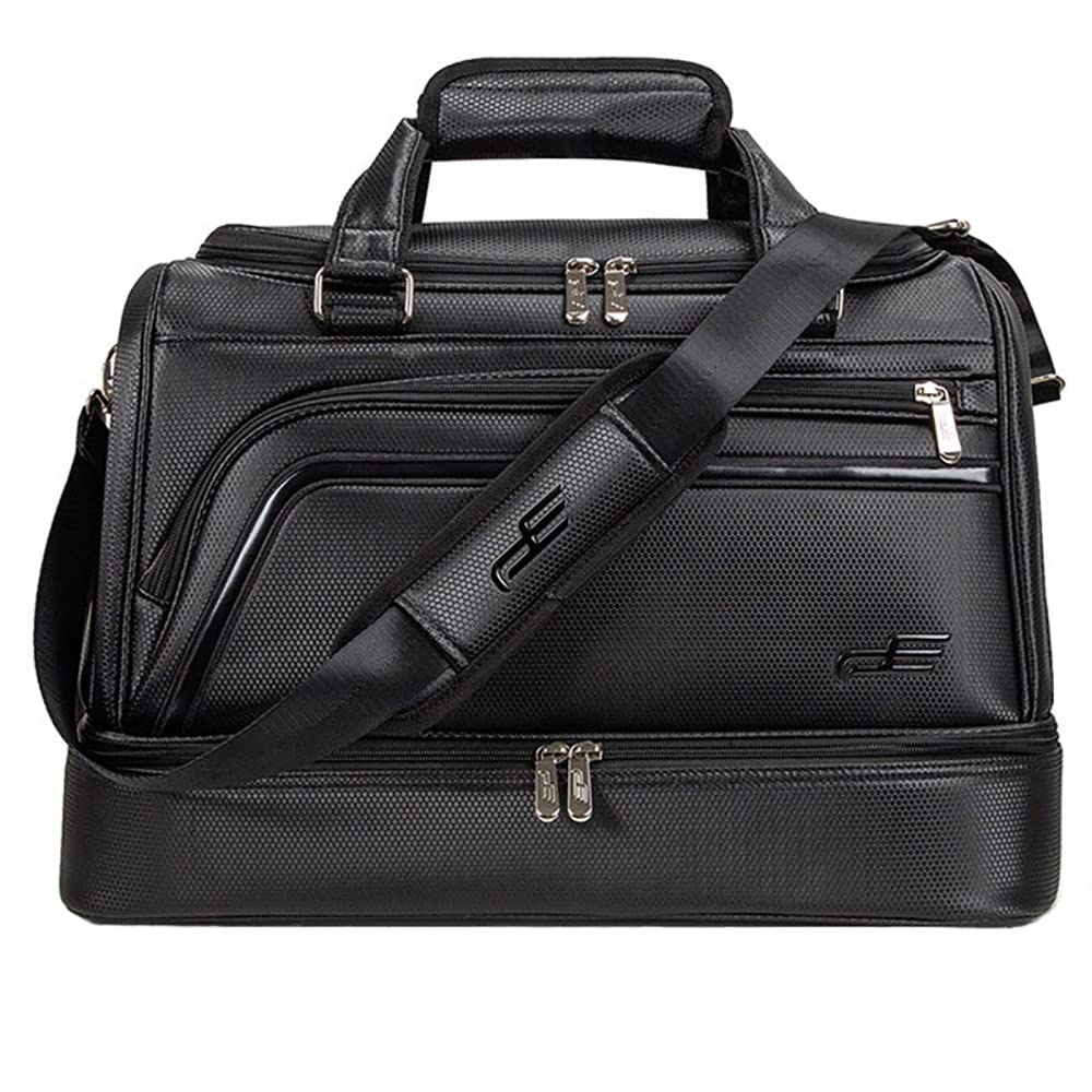 【送料無料】PlayEagle ゴルフ ボストンバッグ 二層式 ゴルフトートバッグ ラウンドトート PUレザー 2WAY ショルダーバッグ シューズポケット付き ショルダー付き 防水 大容量 ジム 旅行 出張 ブラック