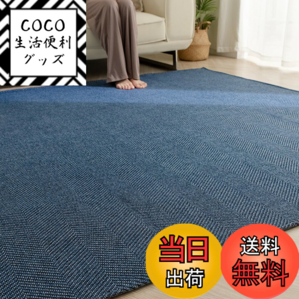 【送料無料】Sun Deco ラグ カーペット 1.5畳 ラグマット ヘリンボーン柄 おしゃれ 滑り止め 洗える 春 夏 オールシーズン快適 リビングマット 北欧 床保護 ホットカーペット対応 無地 135x185cm ネイビー