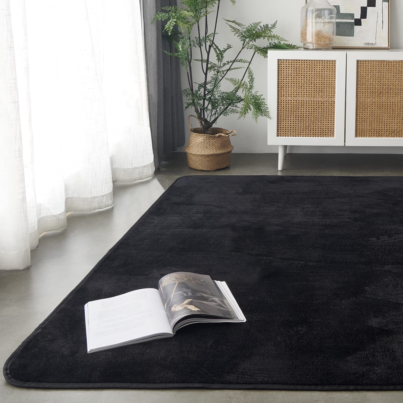 【送料無料】Keusnix カーペット ラグ ラグマット滑り止め付 洗える 135x185cm 約1.5畳 絨毯 防ダニ 抗菌 防臭 オールシーズン快適に使用 床暖房 ホットカーペット対応 ふわふわ肌触り フランネルラグ 無地 ブラック