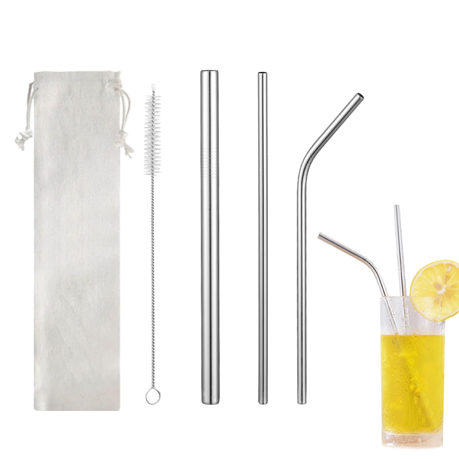 【送料無料】nalaina ステンレスストロー 【【3本セット】 金属ストロー 繰り返し利用可能 洗浄用ブラシ付 収納袋付