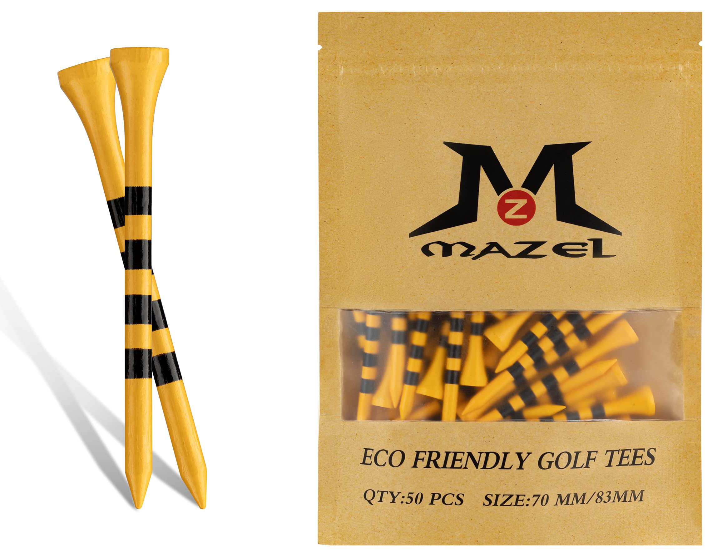 【送料無料】MAZEL (マゼル) ゴルフティー ウッドティー ロングティー 70mm/83mm (50本入り(木色+ブラック))