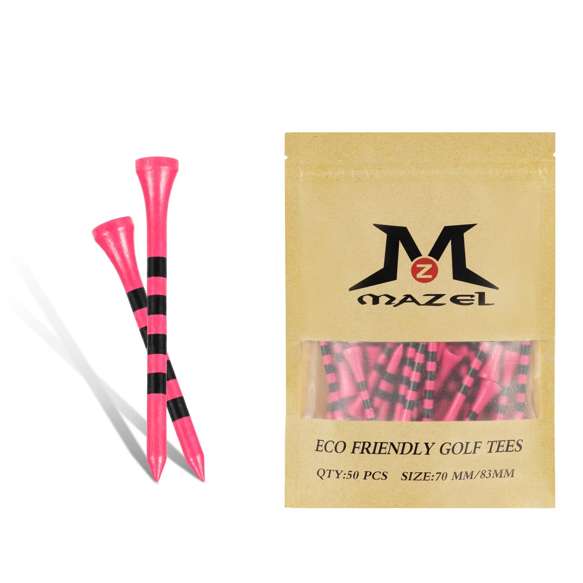 【送料無料】MAZEL (マゼル) ゴルフティー ウッドティー ロングティー 70mm/83mm (50本入り(ピンク))