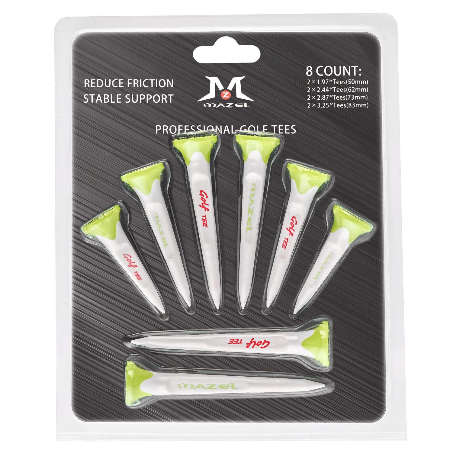 【送料無料】MAZEL (マゼル) プラスチック製 ゴルフティー 飛距離アップ 高耐久 折れにくい ロングティー/ショートティー ドライバー 8本入 50mm/62mm/73mm/83mm (ライトグリーン)