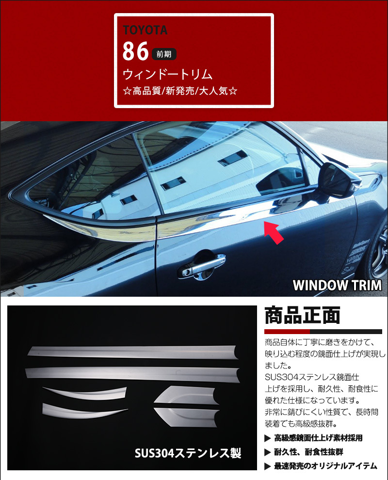 [割引]トヨタ 86 ハチロク 前/後期 ウィンドウトリム サイドウィンドウガーニッシュ ウィンドウパネル ウィンドウモール ステンレス鏡面6P au-ex369