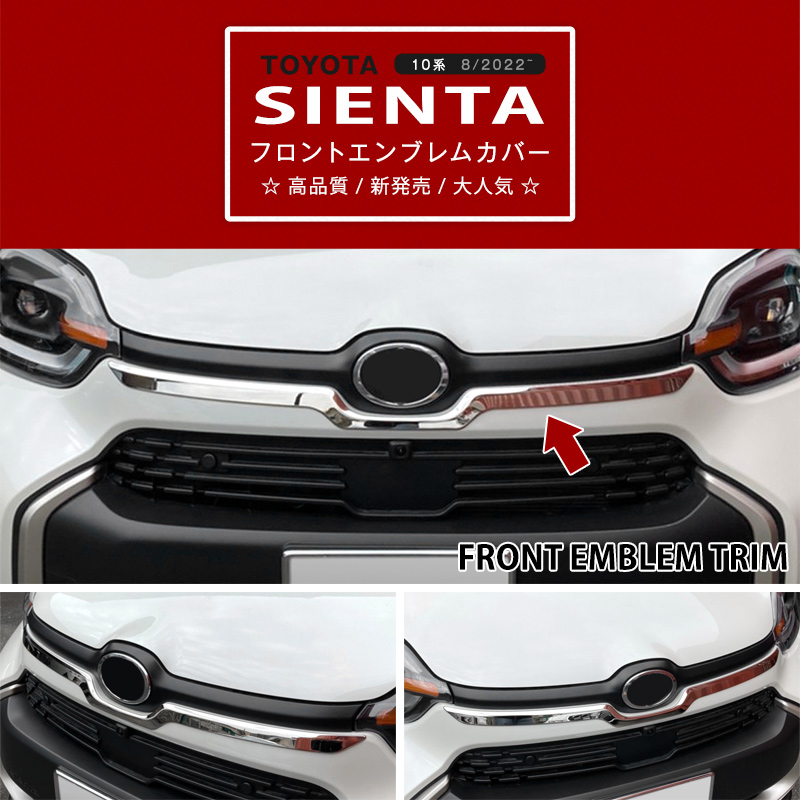 TOYOTA SIENTA シエンタ10系 R4.8〜 令和4年8月〜 新型車 自動車パーツ フロントエンブレムトリム フロントエンブレムモール カスタムパーツ カーアクセサリー エンブレムアンダーガーニッシュ フロントパーツ フロントエンブレム下側 キズ予防 傷予防 保護パーツ 傷隠し ドレスアップ エアロ メッキモール メッキ仕上げ カー用品 エクステリア