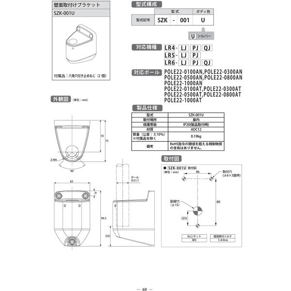 パトライト アルミポール(Nタイプ)用 壁面取付ケブラケット SZK-001U ※受注生産品