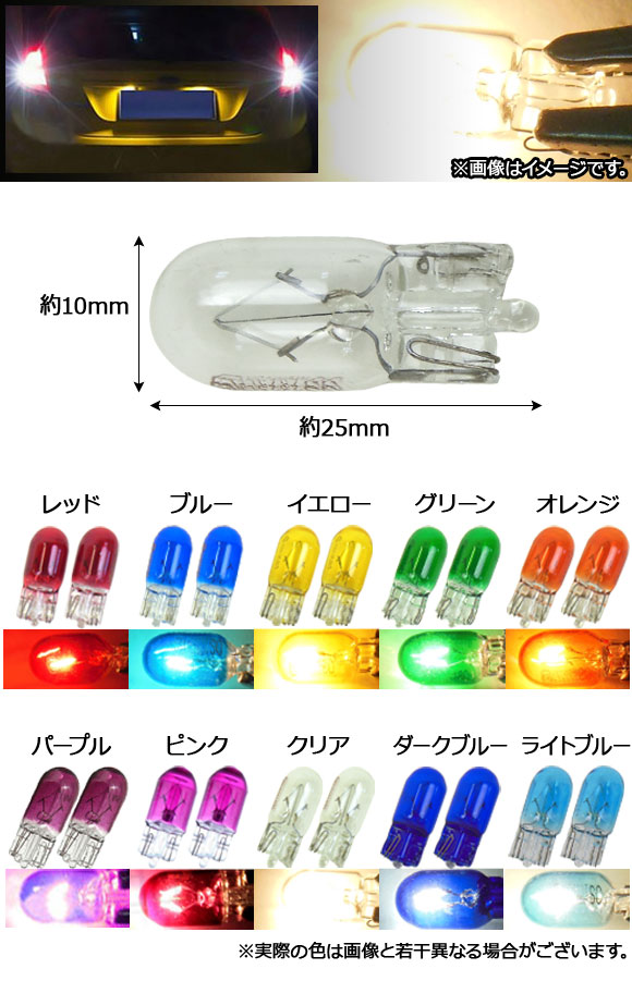 AP ハロゲンバルブ T10 シングル球 12V 5W ウェッジ ナンバー灯やポジションランプにおすすめ! 選べる10カラー AP-LL122 入数:2個