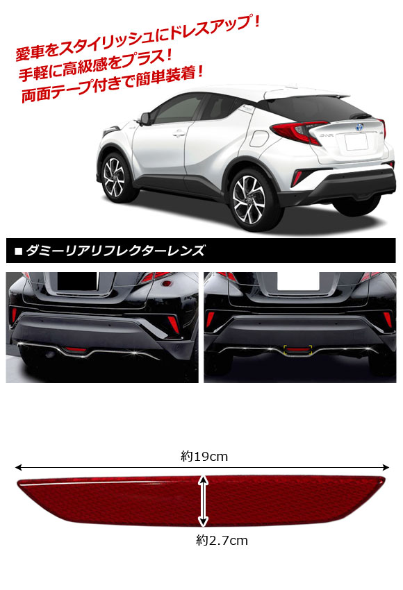 ダミーリアリフレクターレンズ トヨタ C-HR NGX50/ZYX10 2016年12月〜 レッド 貼り付けタイプ AP-RF037