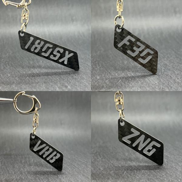 ドライカーボン オリジナル文字列 キーホルダー 受発注 車の型式やイニシャル、数字などなど 切り抜き文字
