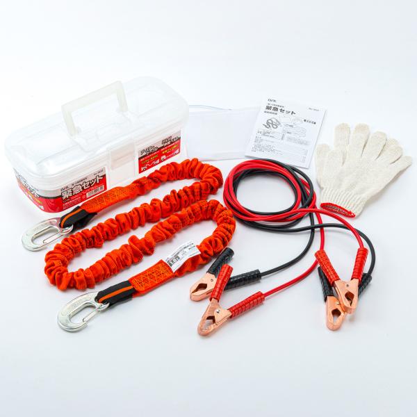 ■ブースターケーブル(DC12V50A×2.15m用1組)■けん引伸縮ベルト(小・中型乗用車用1.8トン×4m/伸張時)■作業用手袋(1組)■白旗(1枚)■取扱説明書(保証書/1冊)