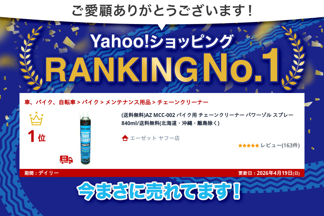 (送料無料)AZ MCC-002 バイク用 チェーンクリーナー パワーゾル スプレー 840ml/送料無料(北海道・沖縄・離島除く)