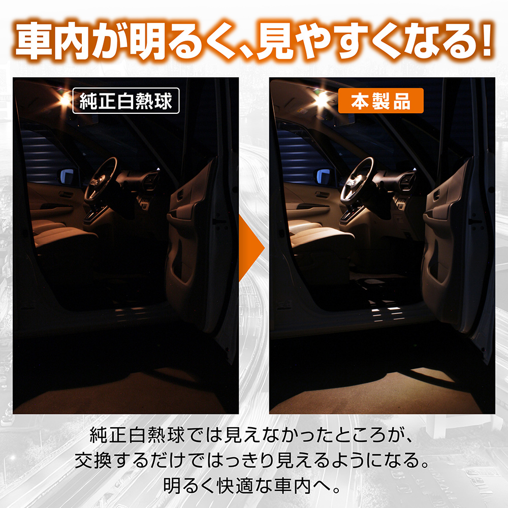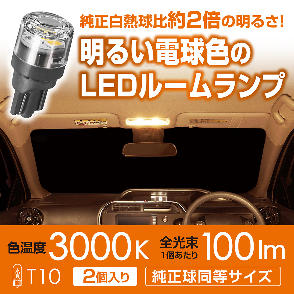 純正白熱球比約2倍の明るさ!明るい電球色のLEDルームランプ
