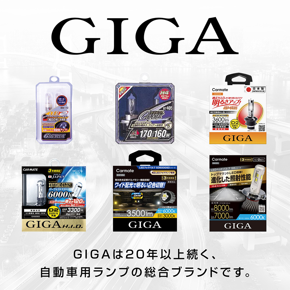 GIGAは20年以上続く、自動車用ランプの総合ブランドです。