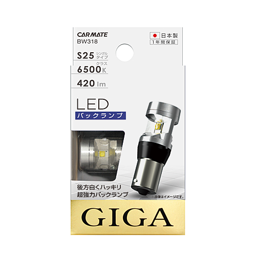 訳あり LED バックランプ 車 BW318 GIGA LEDバックランプ 6500K 420LM S25 1個入り 日本製 車検対応 1年間保証 carmate(R80)(P10)