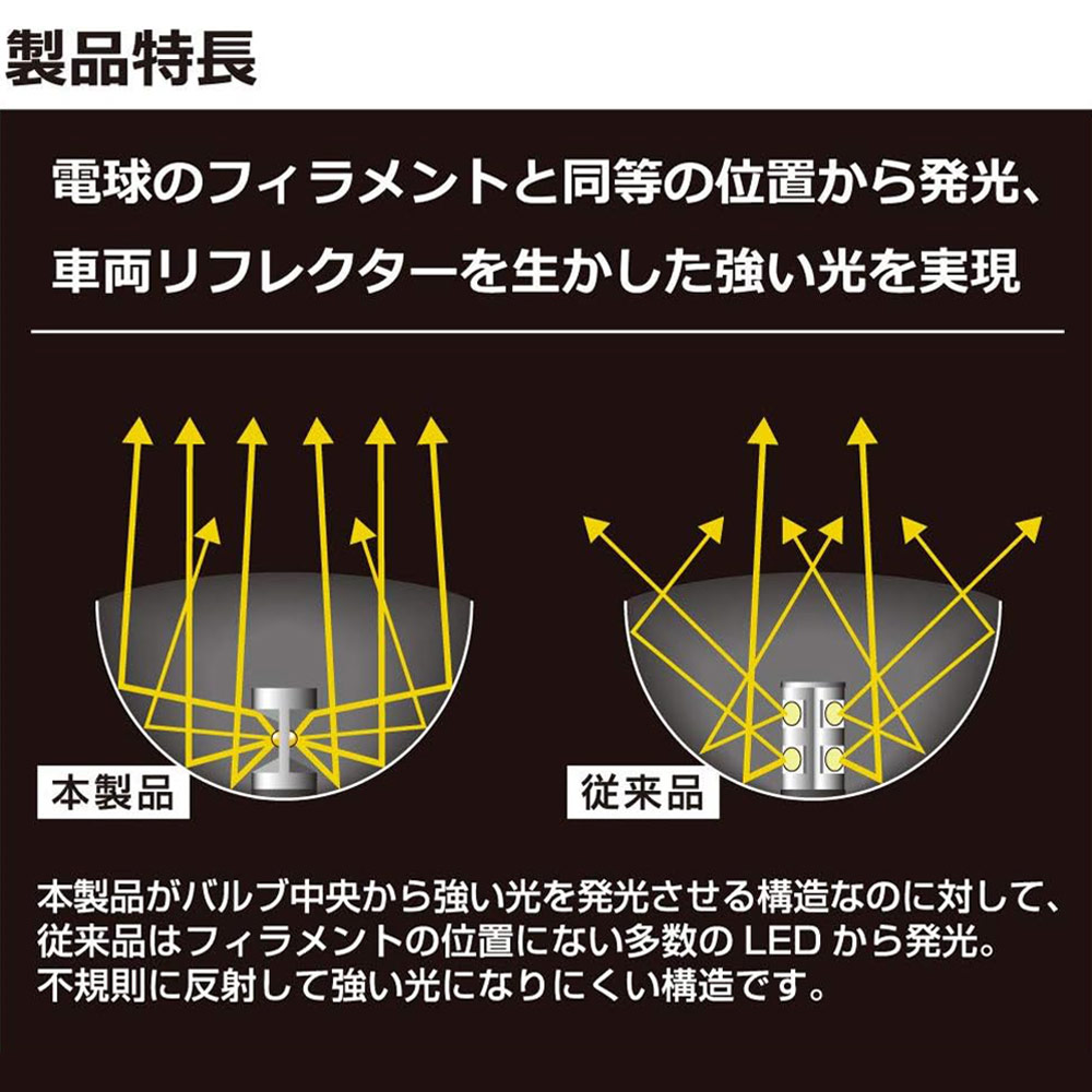 最新の高輝度LEDを2個採用し、明るさ・配光に徹底してこだわったLEDバルブ。