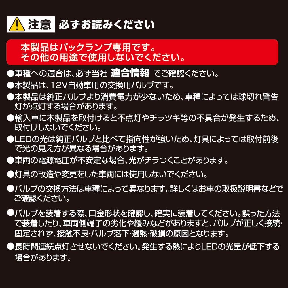 最新の高輝度LEDを2個採用し、明るさ・配光に徹底してこだわったバックランプ用LEDバルブ。