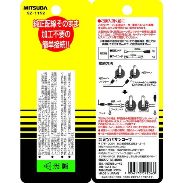 【商品説明】ホーンの純正配線そのままに加工不要の簡単接続! 主にホンダ等に採用されているコネクター形状です。【仕様】●内容物:変換コード(1.5m)×2、アースコード(0.5m)×2