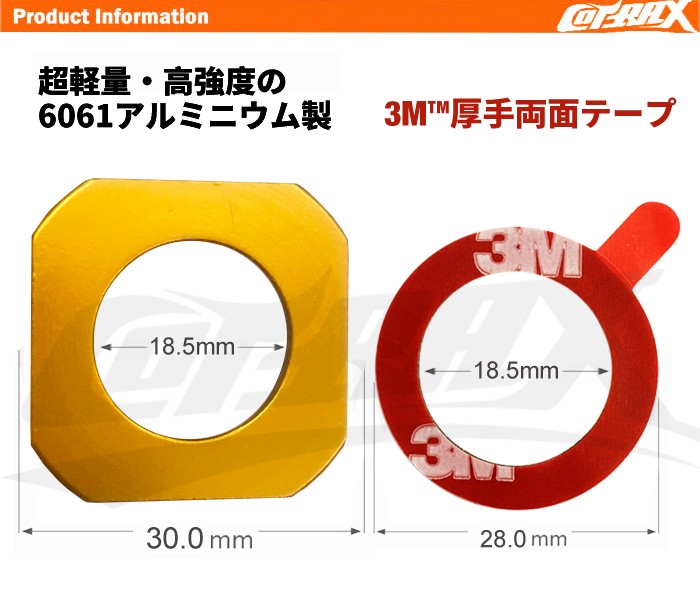 【COTRAX】封印カバーリング 3M両面テープ固定 アルミ製 自動車 封印リング ドレスアップ カスタム パーツ 取付簡単 軽量 アルマイト スクエア(ゴールド)