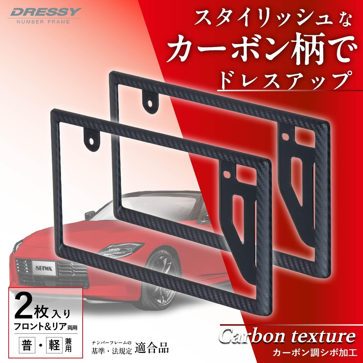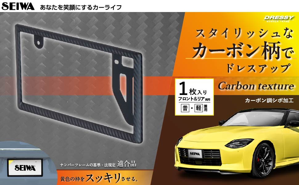 セイワ DRESSYナンバーフレーム カーボン K447 1枚 普通車 軽自動車 純正ボルト そのまま使用 フロント リア ナンバープレート