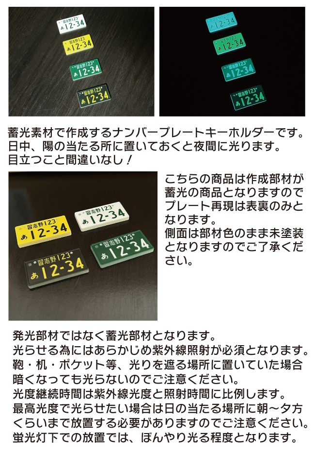 蓄光素材で作成するナンバープレートキーホルダーです。