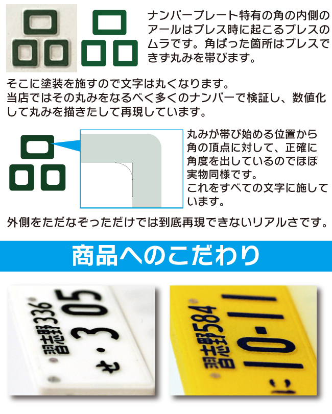 こちらの商品は作成部材が蓄光の商品となりますのでプレート再現は表裏のみとなります。