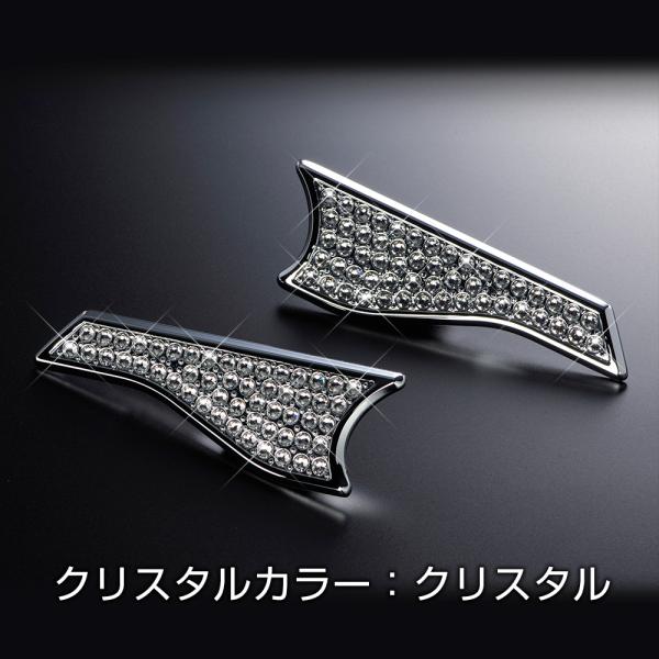 抜群のフィット感を実現したクロームコーティングプレートに、輝きを放つクリスタルを散りばめた高級感溢れる大人なドレスアップを楽しめるアイテムです。