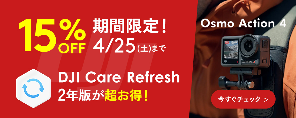 | 製品構成 | Osmo Action 4 ×1 Osmo Action エクストリーム バッテリー ×1 Osmo Action 保護フレーム(水平&垂直取り付け) ×1 Osmo Action クイックリリース式アダプターマウント ×1 Osmo Action 接着式カーブベース ×1 Osmo 止めねじ ×1 PD規格対応ケーブル(Type-C - Type-C) ×1 Osmo Action レンズフード ×1 Osmo Action 滑り止めパッド ×1 DJIロゴステッカー ×1 クイックスタートガイド ×1 免責事項 ×1 保証書 ×1 |