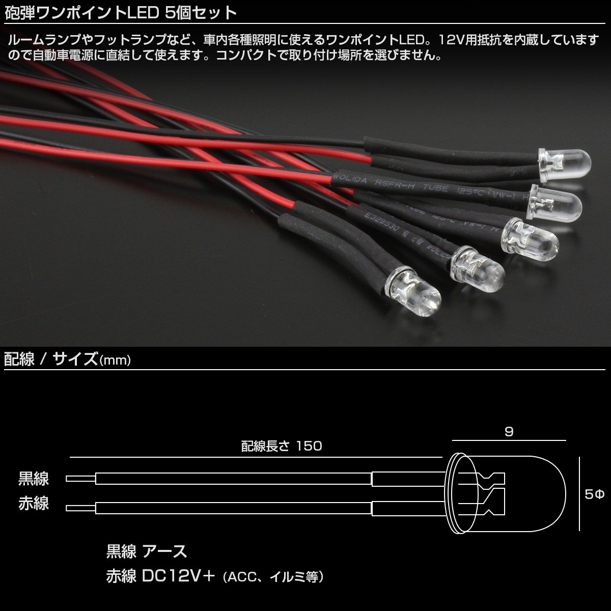 LED 砲弾 ワンポイント 5個セット ルームランプ フットランプ スポットライト パイロットランプ 12V P-313