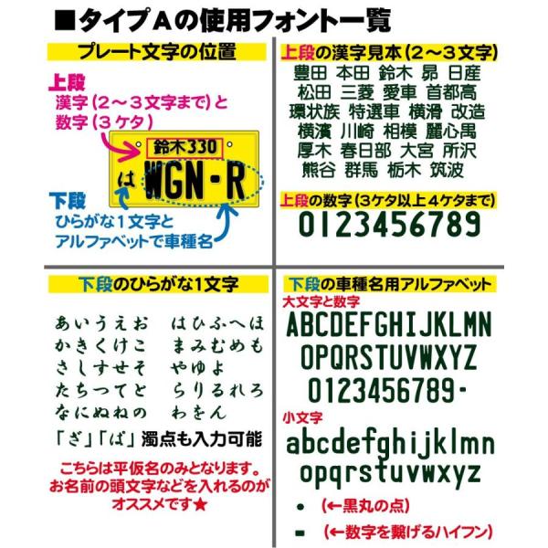 お好きな文字、番号であなただけのナンバープレートを!