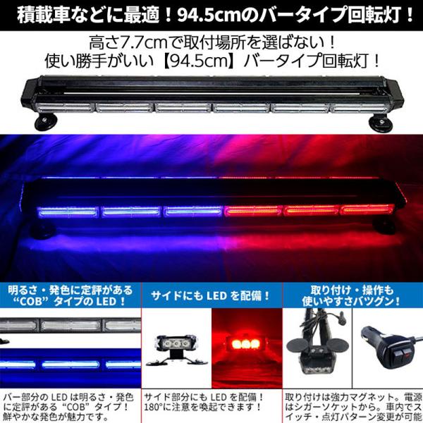 アメパト仕様 12V 24V【94.5cm】LED回転灯 バータイプ【レッド&ブルー】 COBチップ シガーソケット電源 マグネット WB8236-8S パトランプ ストロボ ビーコン