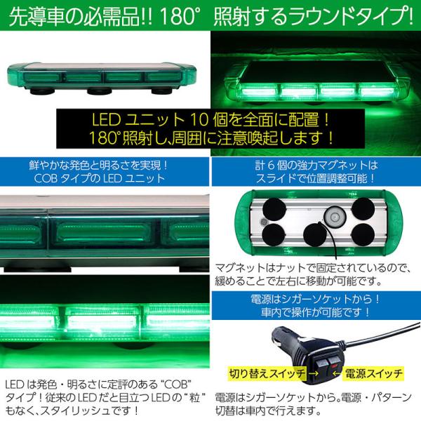 道路運送車両用 緑色灯 12V 24V【55×22cm】LED回転灯 ラウンドタイプ【グリーン】COBチップ 薄型 シガーソケット マグネット WB813-40 ストロボ ビーコン
