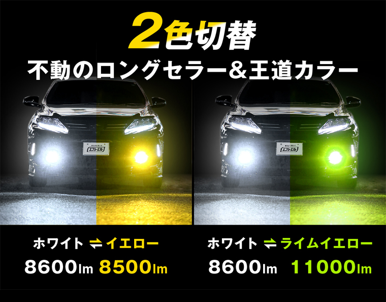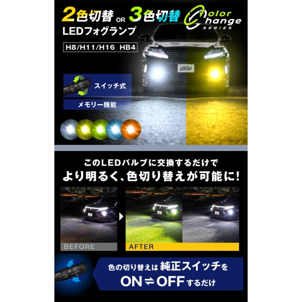 LED H11 H16 H8 HB4 フォグランプ 2色切り替え 3色切り替え LEDバルブ 汎用 イエロー ホワイト ライム アンバー 車検対応 ヴェルファイア 20系 アルファード