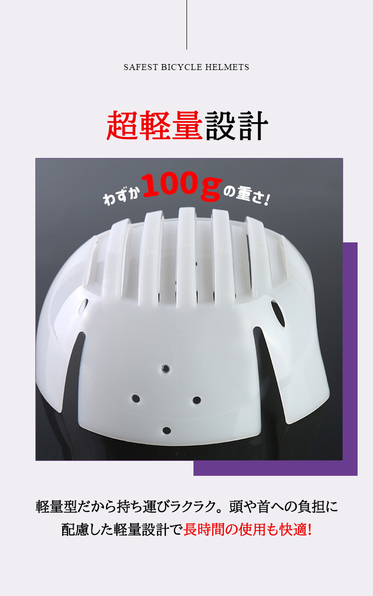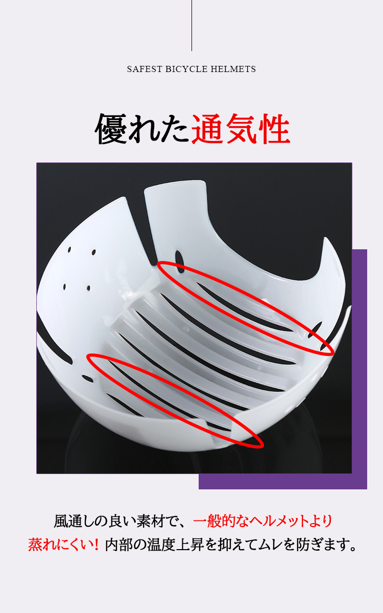 - 風通しの良い素材で、 一般的なヘルメットより蒸れにくい